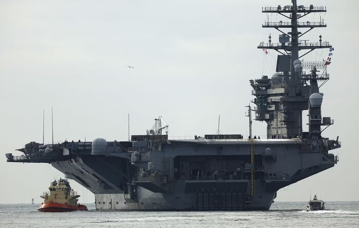 A embarcação, movida a propulsão nuclear, estava no mar do sul da China e deixou a região em direção ao Oriente Médio, cancelando uma escala planejada no Vietnã. Ao mesmo tempo, mais de 30 aviões-tanque de reabastecimento aéreo da Força Aérea dos EUA decolaram de bases morte-americanas, rumo ao leste, através do Atlântico.
