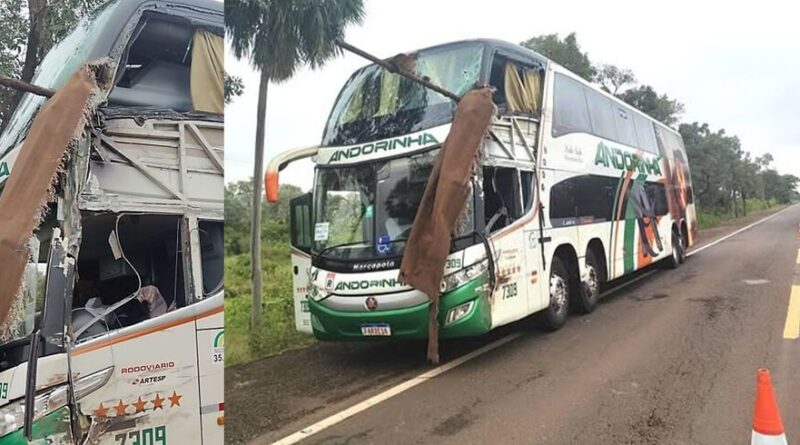 Duas pessoas morreram e outras ficaram gravemente feridas em tragédia entre ônibus de viagem e caminhão perto de Corumbá.